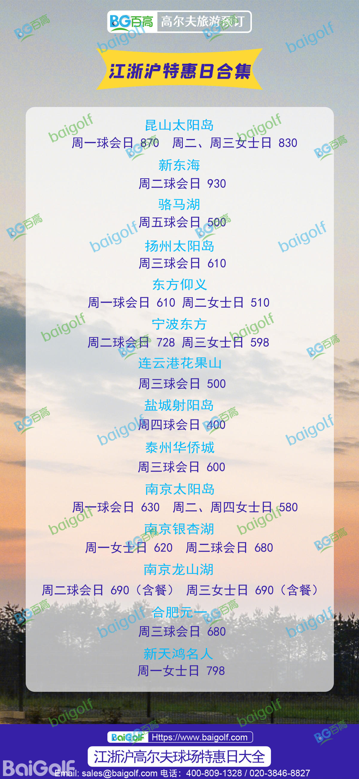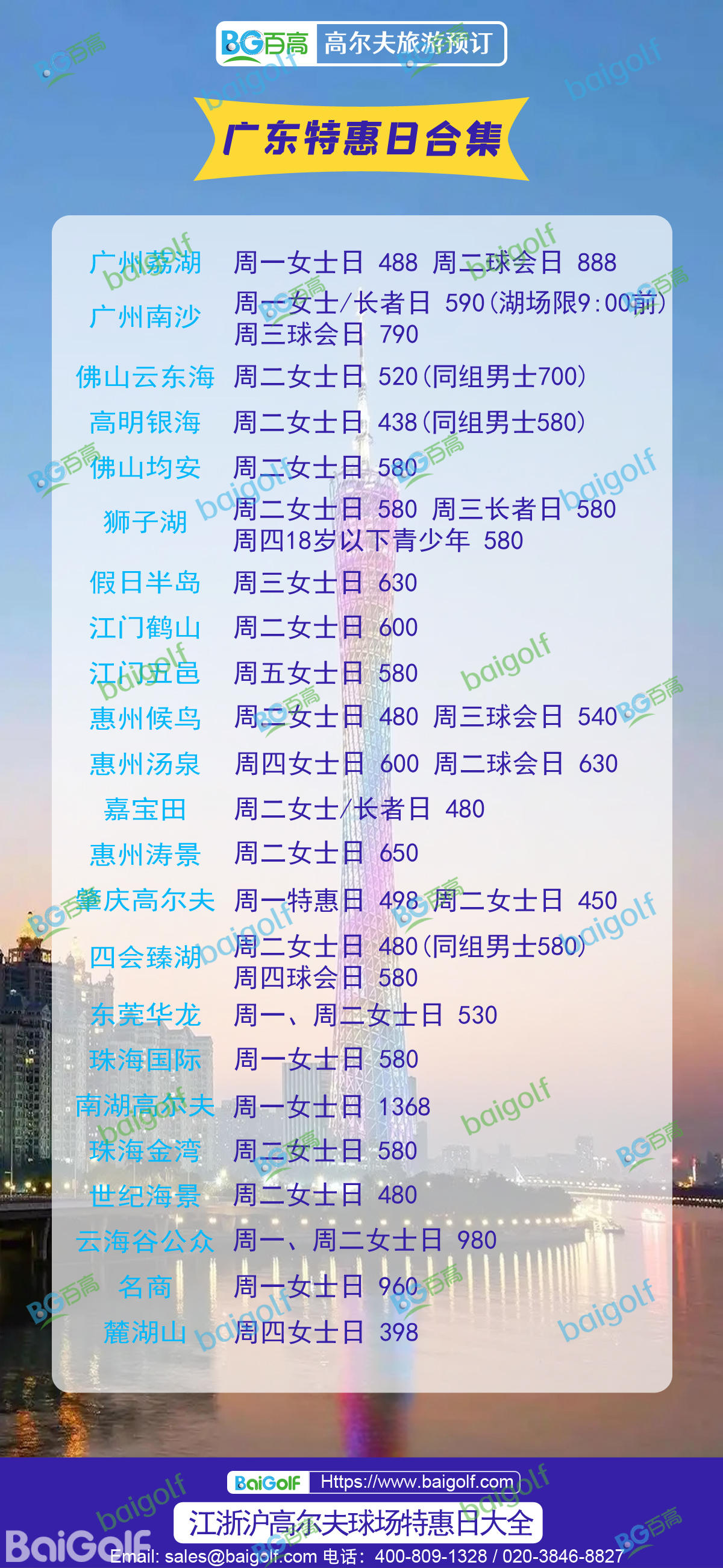 小編含淚整理了廣東和江浙滬球場特惠日合集,就想讓百高的球友們不錯過任何特惠!