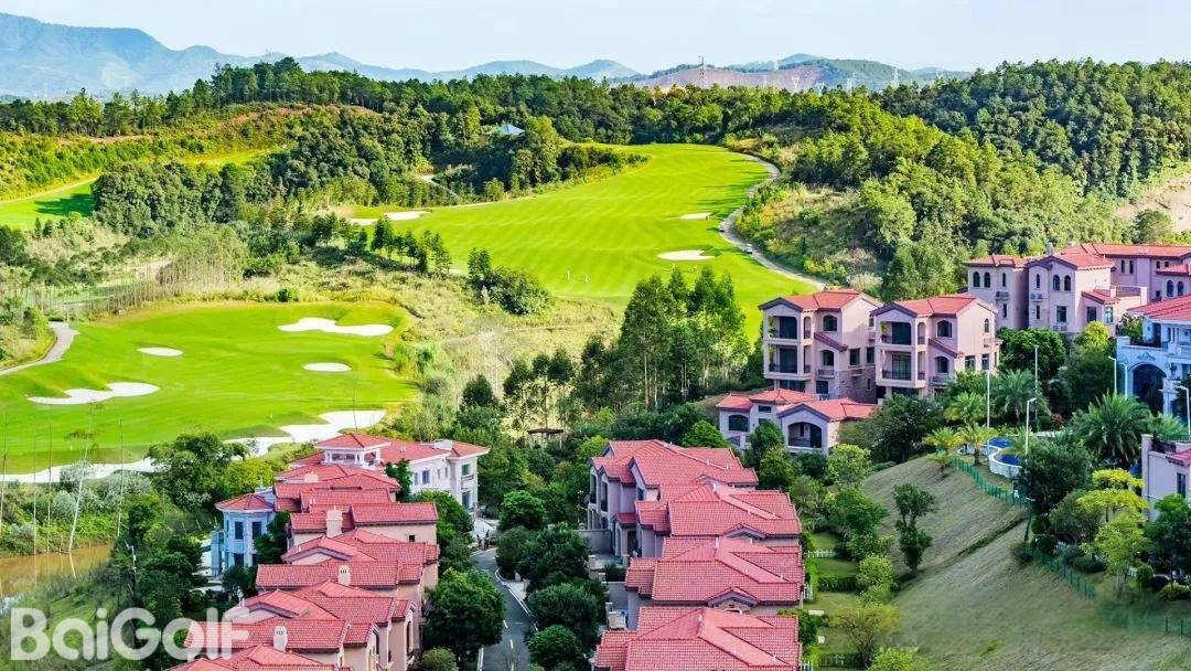 球场依山傍水,充分利用高低起伏、错落有致的自然地势地貌,球场由点到线,渐次铺就,巧妙分布其间。