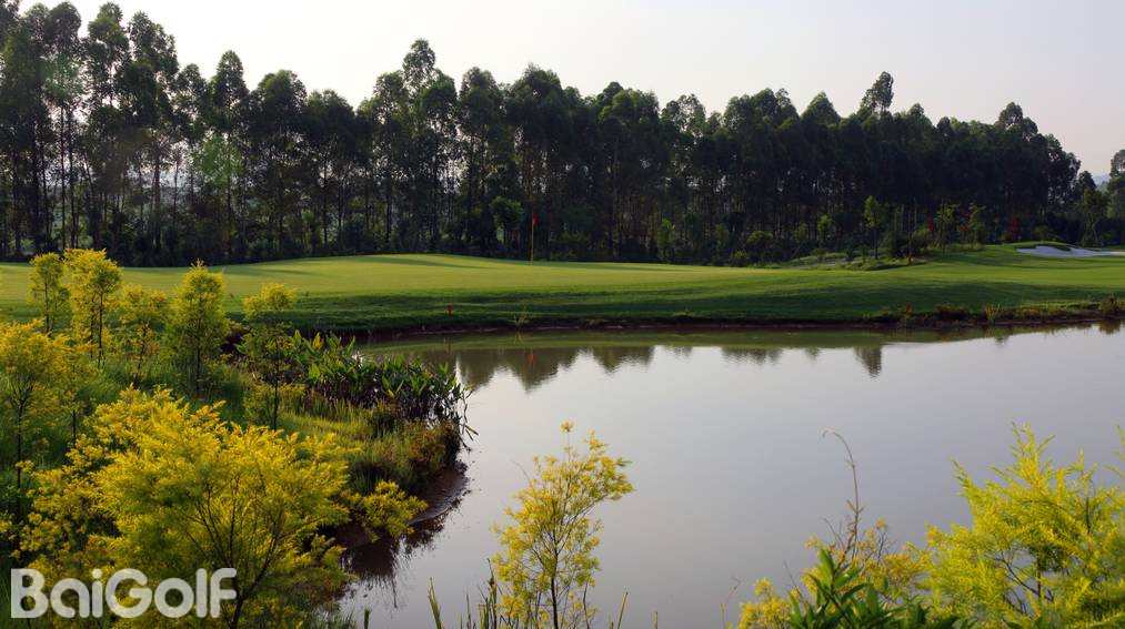 前九洞湖光景美,蓝湖荷叶飘香,亚热带果树灌木及湖泊溪流迂徊穿梭于球道间。球场后九洞山地特色突出,自然的山坡走势结合人工的造型雕琢,美不胜收。后九洞配有灯光设施。此外,独特的生态水系,形成水域、高尔夫、温泉相映相衬的绝佳景观。