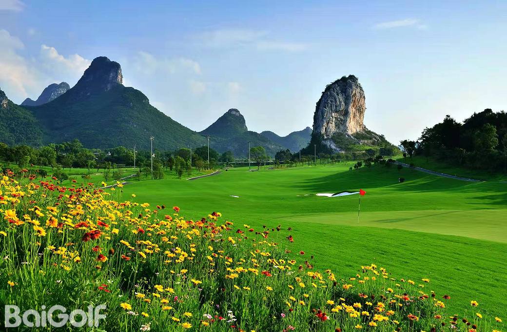 1996年11月正式开始营业,依据USGA标准,充分结合国内绝无仅有的桂林独特喀斯特地形地貌建成,即山景(1-9洞)、水景(10-18洞)、石景(19-27洞)。奇峰环绕、依山傍水的果岭让人赏心悦目。更有根据桂林奇特自然的山石精心设计建成的世界上独一无二的石景球道。目前在用为18洞。