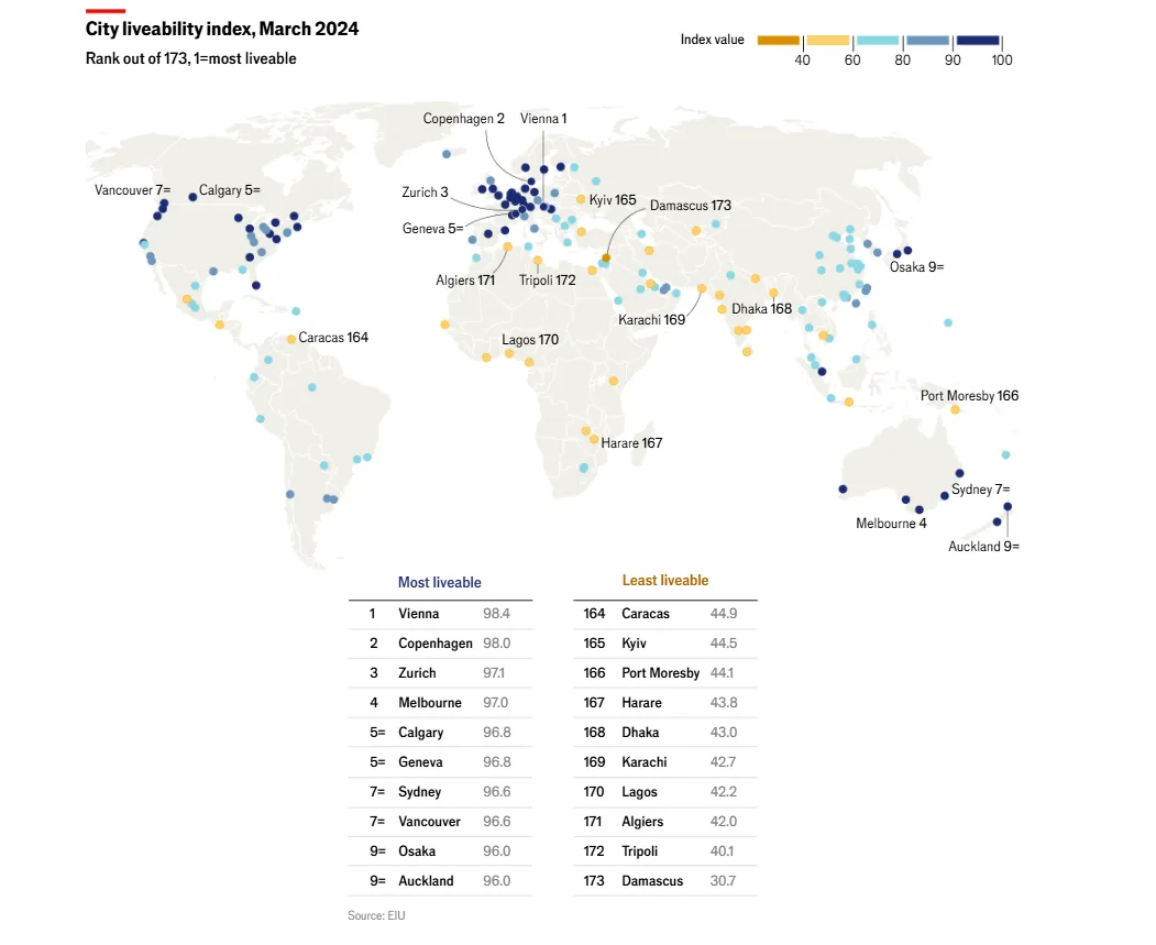 通过经济学人智库(EIU)发布的年度调查数据,大阪稳居全球十大宜居城市。全球宜居性指数反映了各大城市在稳定性、医疗、教育、文化和基础设施等方面的综合表现。