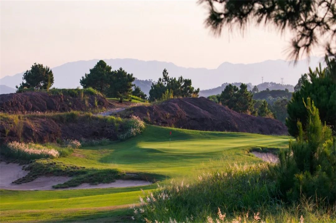 戴伊球場果嶺草選用夏威夷白金草,由著名天才設計師Pete Dye(彼得•戴伊)家族設計,深得彼得•戴伊設計風格的精髓,將女性的柔美和高爾夫運動的趣味性貫穿于每洞之中,同時貫徹戴伊設計特有的“以果嶺定球道”的風格,讓每壹杆都充滿樂趣。而沙坑障礙玲珑精致,猶如調皮的小精靈,暗藏殺機,隨時都可能與球友嬉戲壹番,是壹個充滿奇趣性的都市山地風格的精致球場。