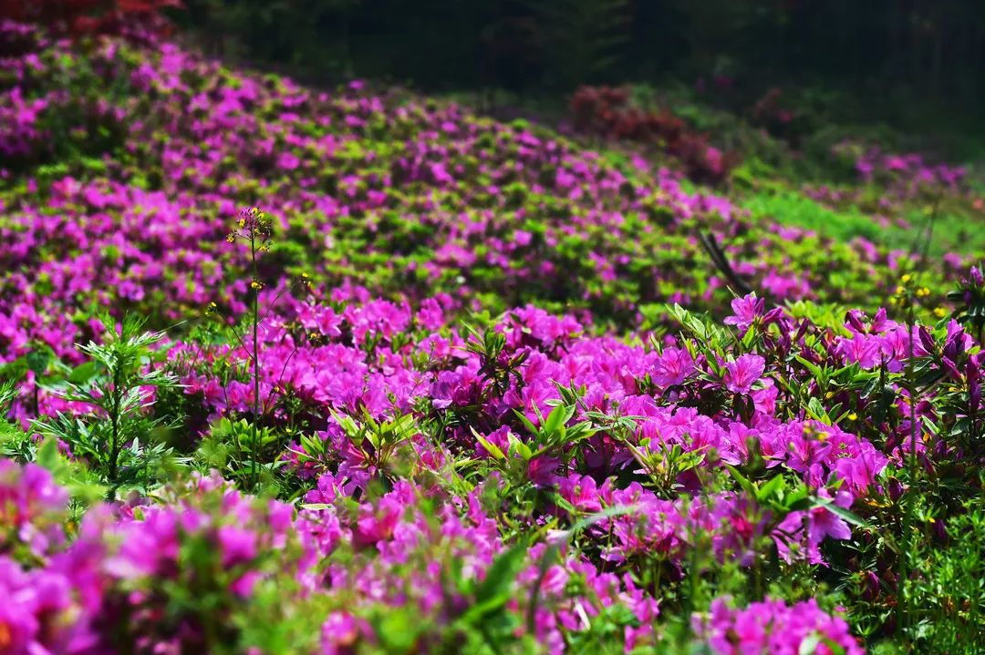 五月则是最盛大杜鹃花季。500万株杜鹃花盛放,誓将青山披红妆!