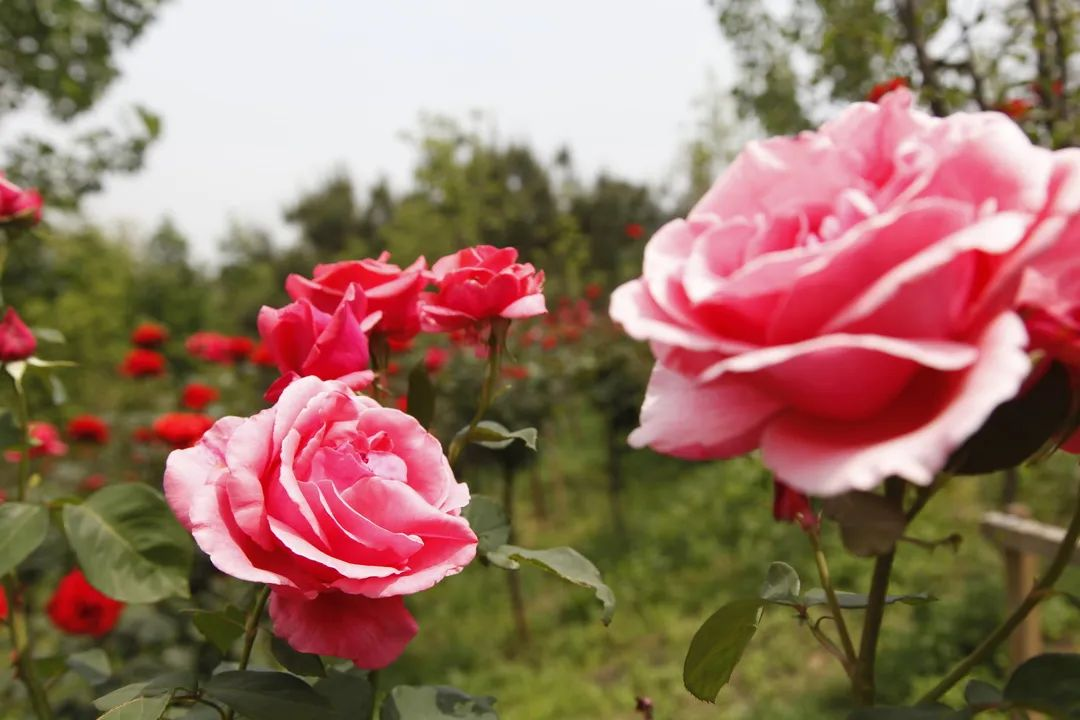 与杜鹃能一较高下的自然是享有“花中皇后”美誉的月季花,绽放着绿意盎然的刺与含烟的红苞,迎来了它最绚烂的季节。