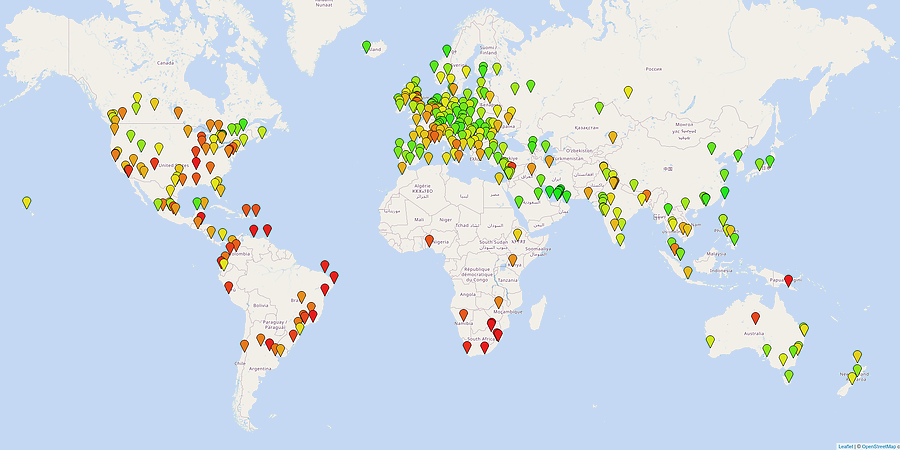 數據來源:NUMBEO Current Safety Index by City