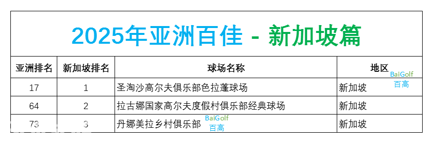 圣淘沙入选百佳的是色拉蓬球场(Sentosa - Serapong Course),亚洲排名第17,新加坡的第一名!这个球场背景是新加坡的海港,还有两个巨大的湖泊,难度可不小哦。
