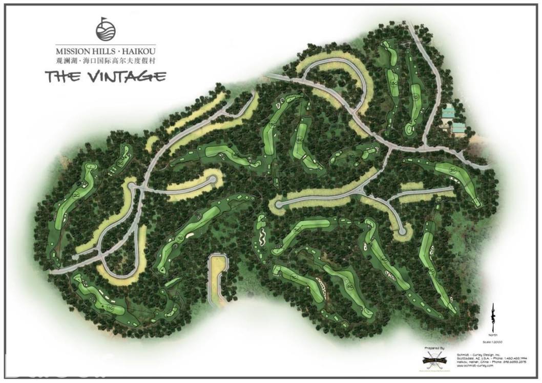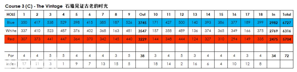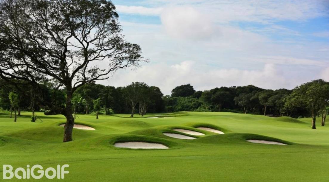 特点:深沙坑,方形的果岭沙坑以及分水岭造型,有盲区以及面积较大的果岭。