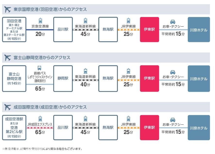 从伊东站出发 - 到达川奈酒店(约 30 分钟)