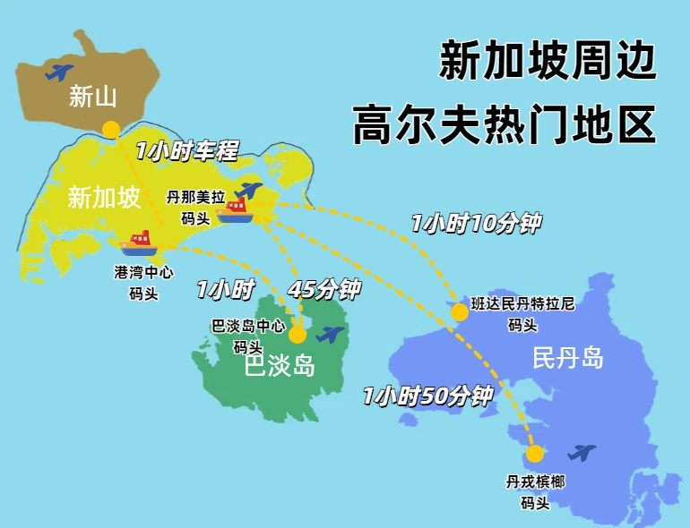 新加坡距离马来西亚,民丹岛,巴丹岛也很近。也是不少球友的选择。
