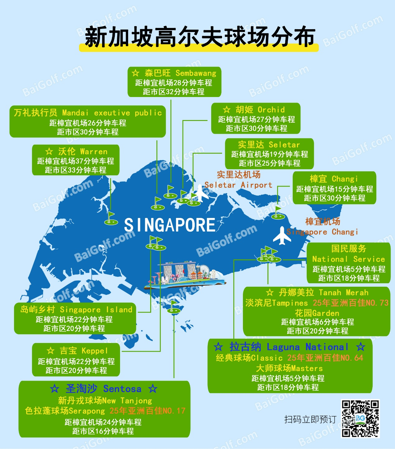 色拉蓬Serapong为亚洲百佳,设施服务最佳,以新加坡海港为背景挥出痛快一击。新丹戎New Tanjong连续三年被评为新加坡最佳球场,经过了改造后更是魅不可挡。