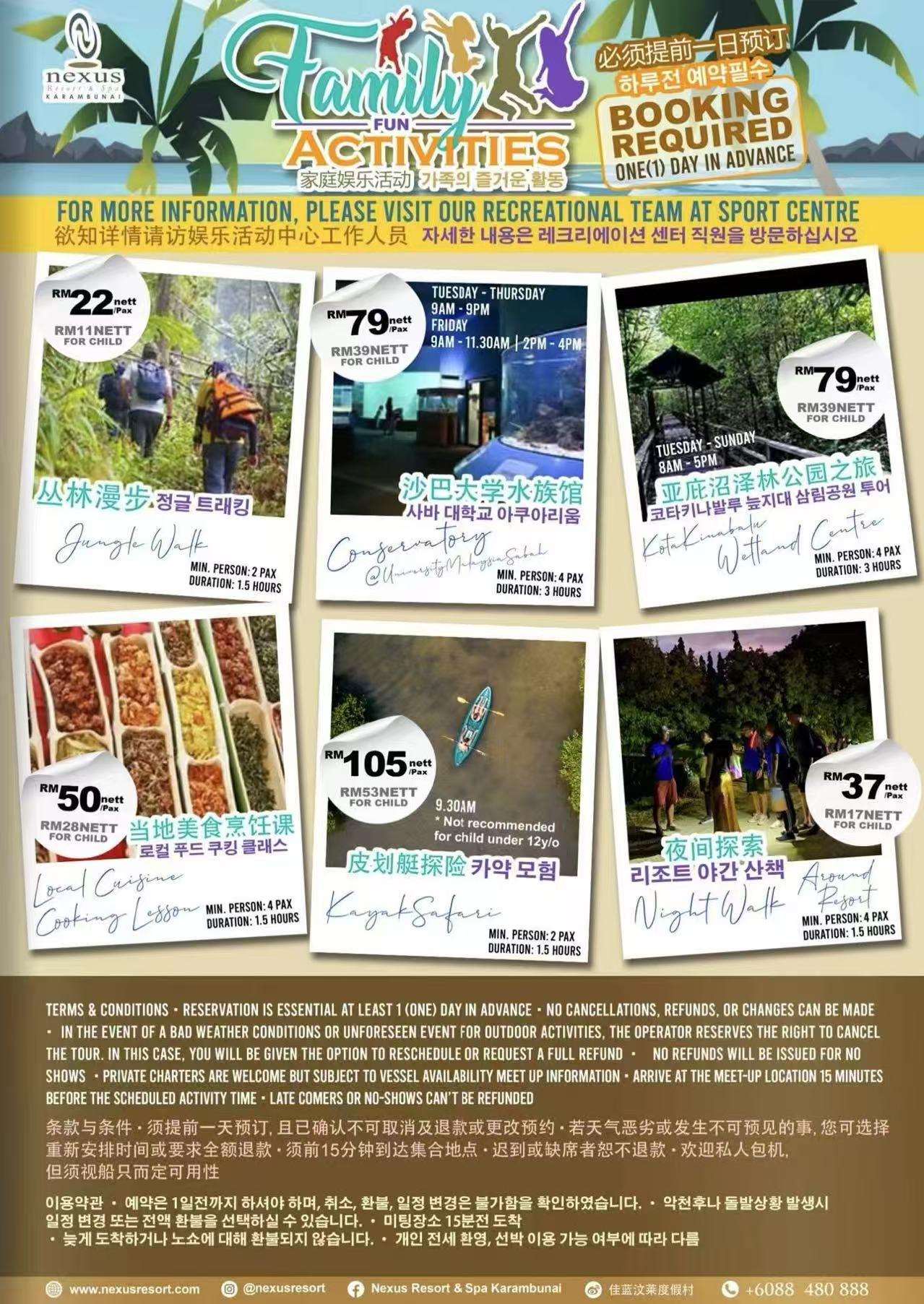 提供两人一次短途旅行 (沙巴大学水族馆/乘船游览日落及萤火虫/亚庇沼泽林公园之旅)
