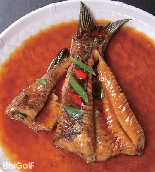 划水,即鱼尾。鱼尾是青鱼身上最鲜嫩灵活的部分,以宁波传统红烧的方式烹饪,浓油赤酱,色泽红亮,口味咸中带甜,最能体现青鱼的肉质本味。