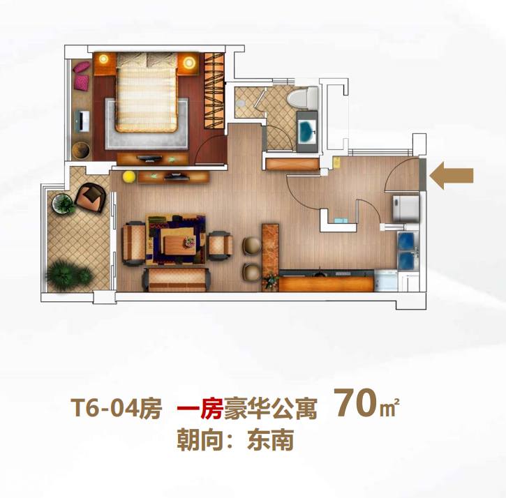 一房豪华公寓(70 ㎡、9套)