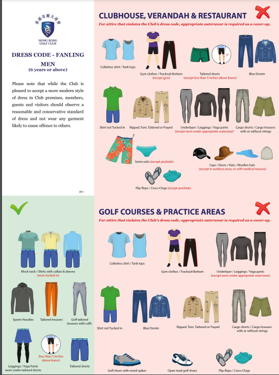 4、著裝要求 - 請球手著裝保守,不超出俱樂部規定的範圍。不得穿著任何牛仔服裝。