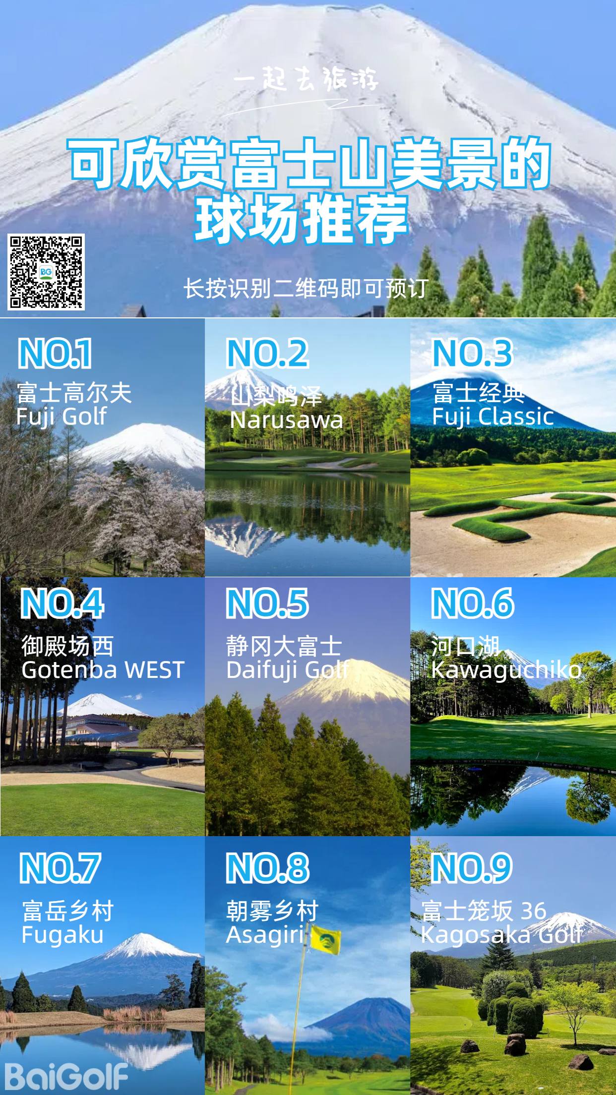 ⛳富士山周边名门推荐:富士高尔夫球场(日本旅游局推荐、有温泉)、富士经典Fuji Classic(小姐姐都超爱、超出片)、川奈富士场(世界百佳、远眺富士山近看太平洋)、川奈大岛场(日本百佳)、朝雾乡村(名门)、河口湖(日本百佳)、鸣泽(日本百佳)、太平洋御殿场西(日本百佳)、富岳乡村、南富士、朝雾Jamboree、富士笼坂36