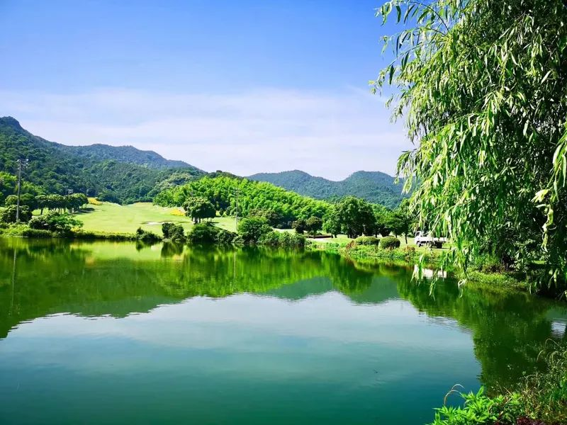 美好的生態吸引了衆多的小動物,松鼠、白鹭群,給球場平添了生機和野趣。清晨霧氣缭繞,草香清新,清脆的擊球聲回蕩在山谷之間,小鳥應聲唱和。白光緩緩升起,湖水盈盈蕩漾,好壹派有情山水!
