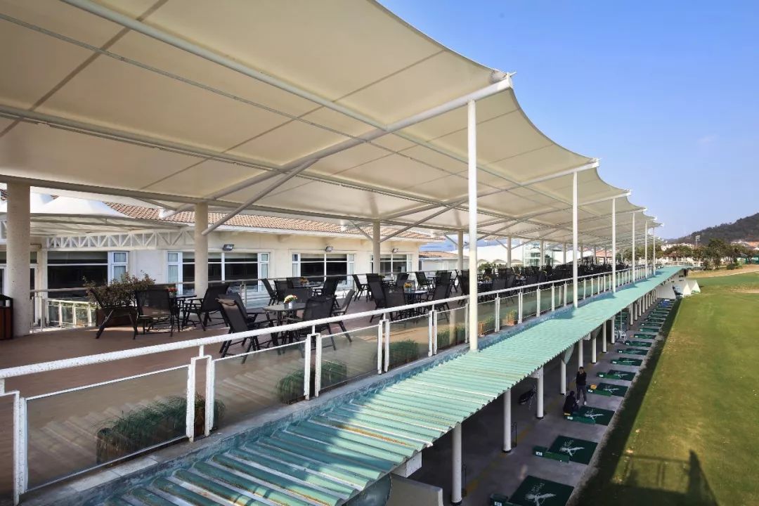 戶外平台面積約1000㎡, 適合200-250人壹面體驗高爾夫球,壹面享受冷餐會、燒烤、自助餐等服務。