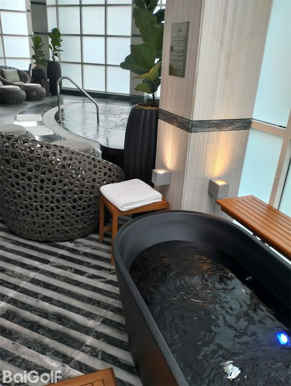 打完球後,您可以洗個大澡,在最好的按摩浴缸裏洗去汗水,還可以在餐廳享用美味可口、聲譽良好的食物,餐廳的氛圍就像酒店的休息室。