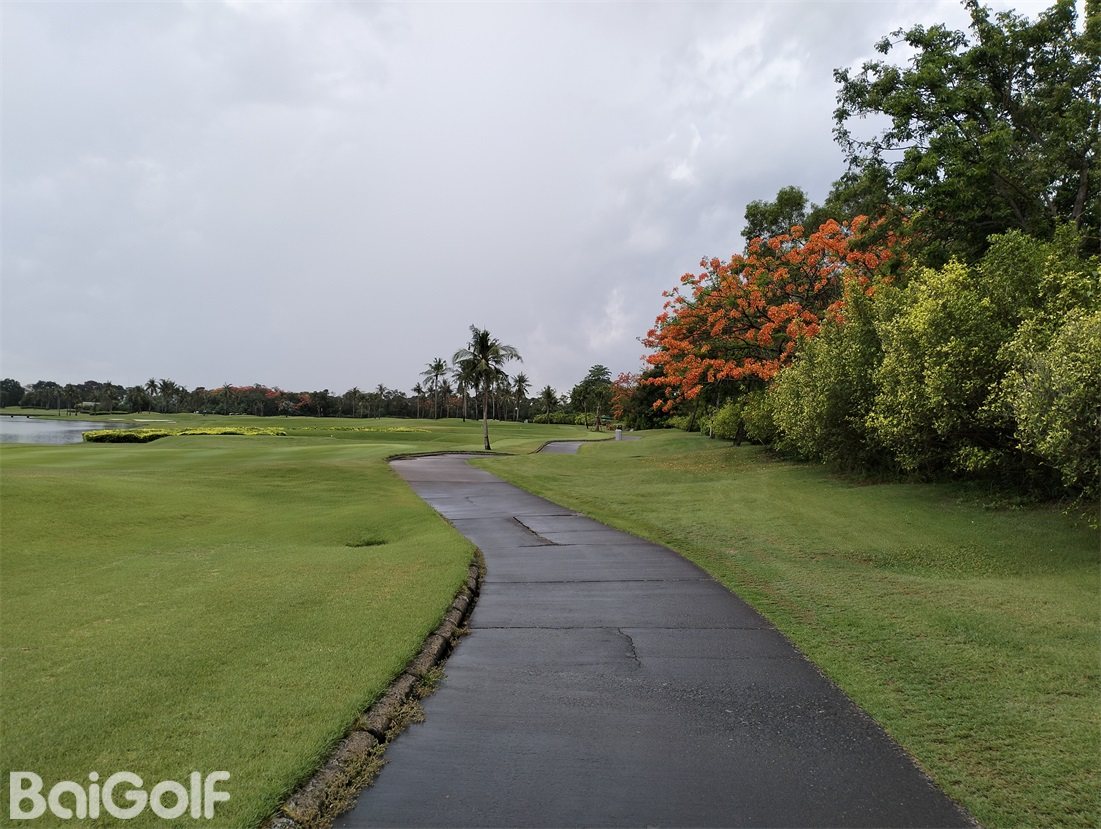 球場四周椰樹環繞,給人壹種熱帶度假勝地的感覺。雖然球場乍看之下平坦舒緩,但真正打起球來,妳才會發現球場並不那麽簡單。 球場維護很好。