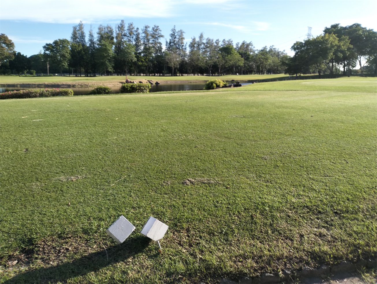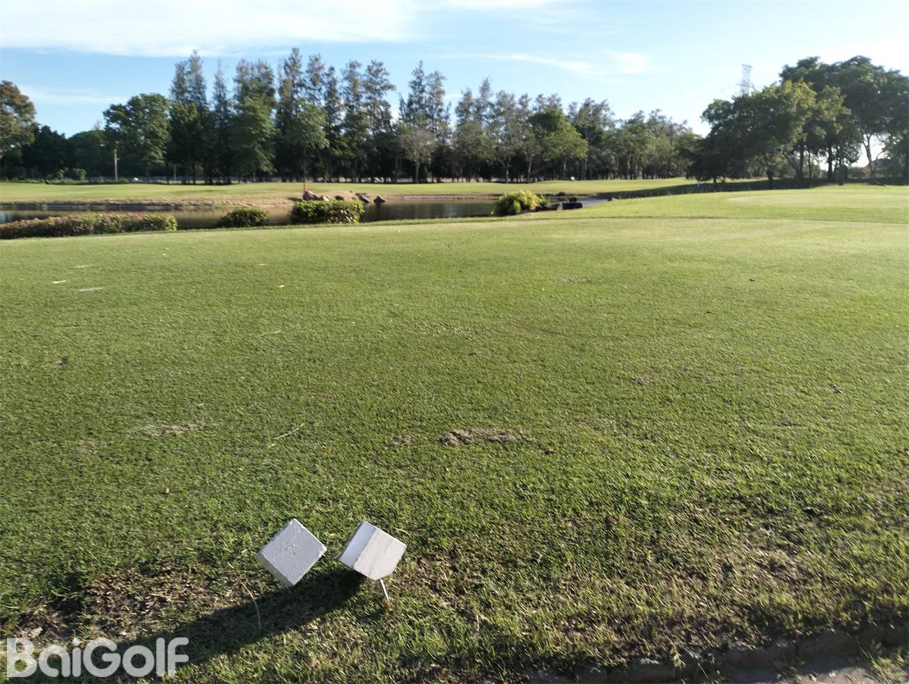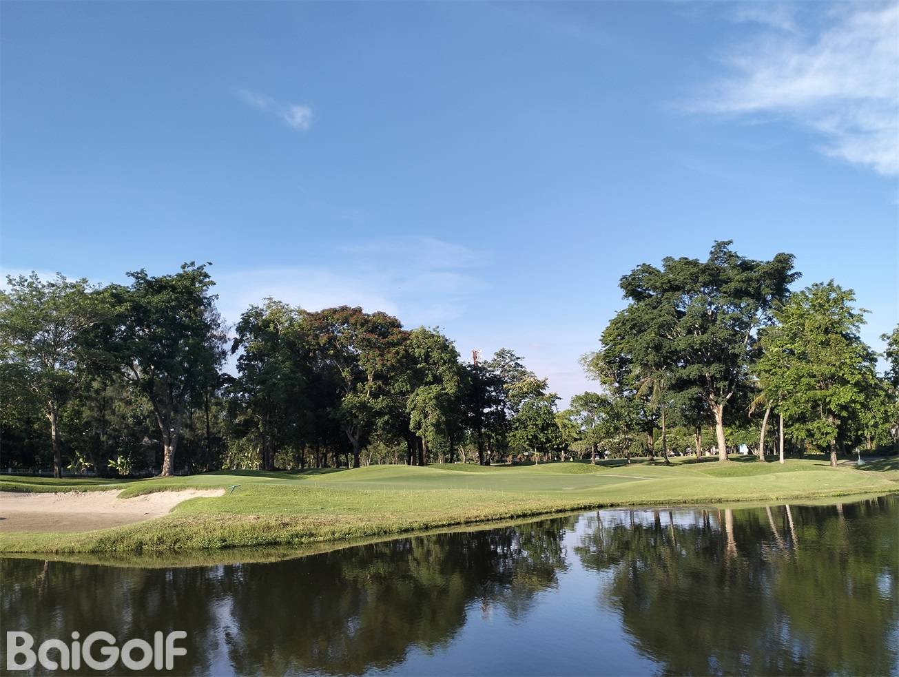 整个球场被热带树木环绕,虽然乍一看很平坦,但球道有的地方起伏很平缓,而且有很多大胆的球洞都有水障碍。还是有一定的挑战性的。