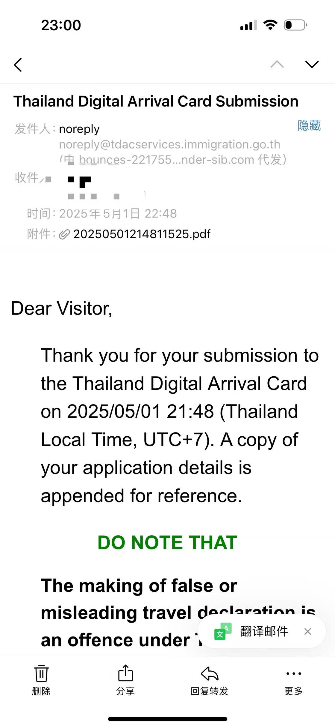 若已提交错误信息,需重新填写并联系移民局客服更新记录。也可重新访问TDAC网站,根据您的参考号码或者其他识别信息进行登录!