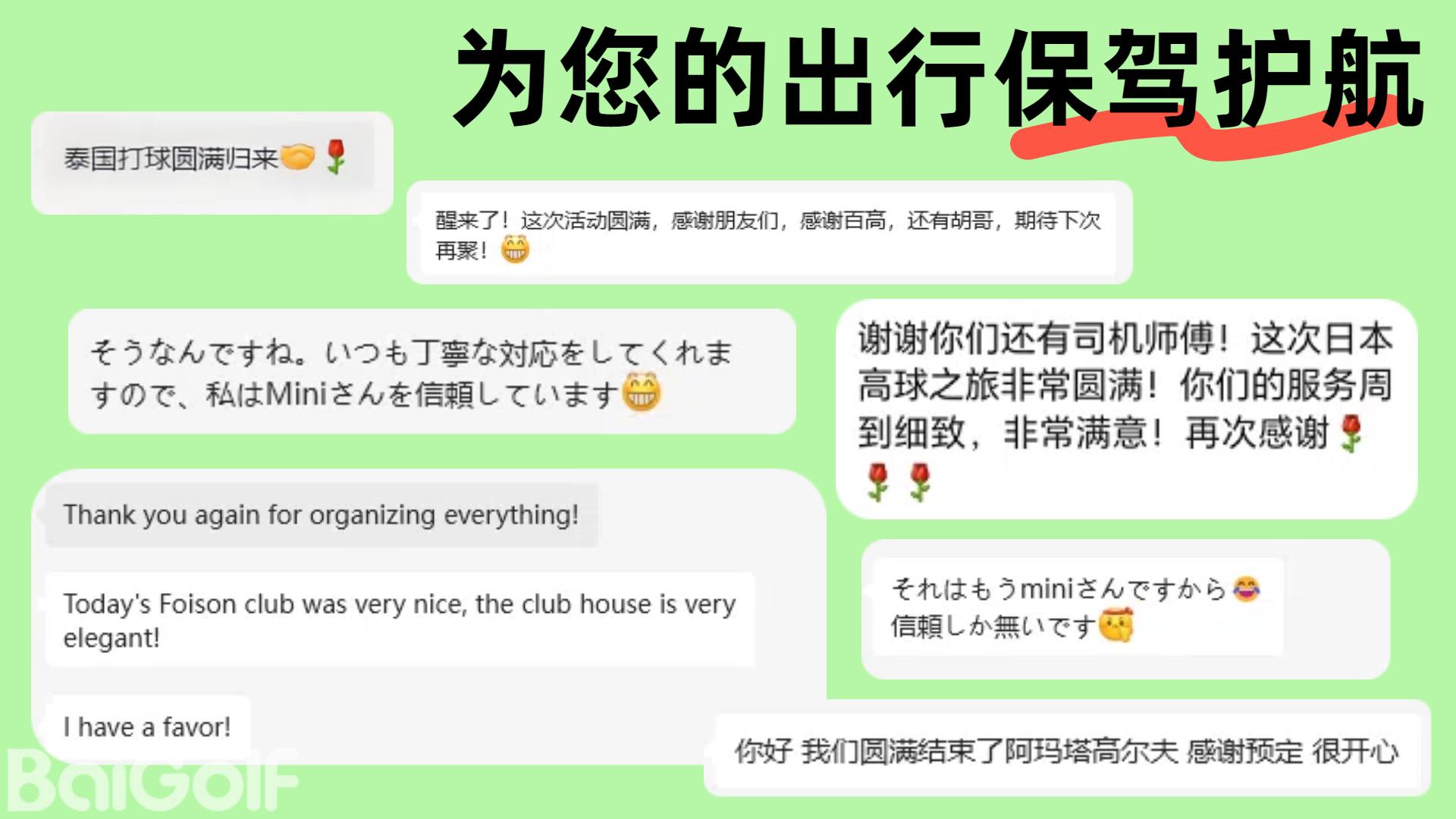 Backed by a team with ten years of professional experience in the golf industry, BaiGolf ensures every trip runs smoothly and safely. With a vision to promote cultural and sports exchange across Southeast Asia, BaiGolf offers premium outbound travel services to various Asian countries for affluent Chinese clientele. To date, the company has successfully organized multiple board-level tours, all of which have received unanimous praise from customers.