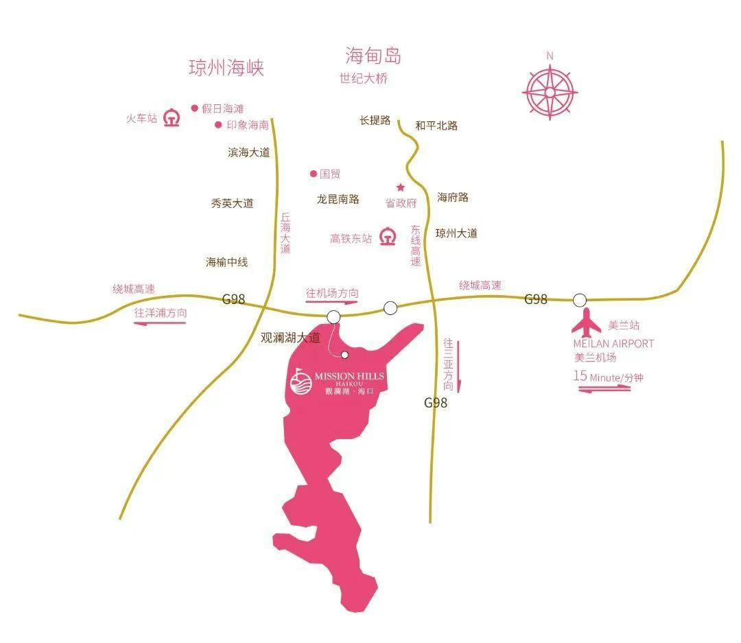 距離海口美蘭國際機場20km,駕車約15分鍾;