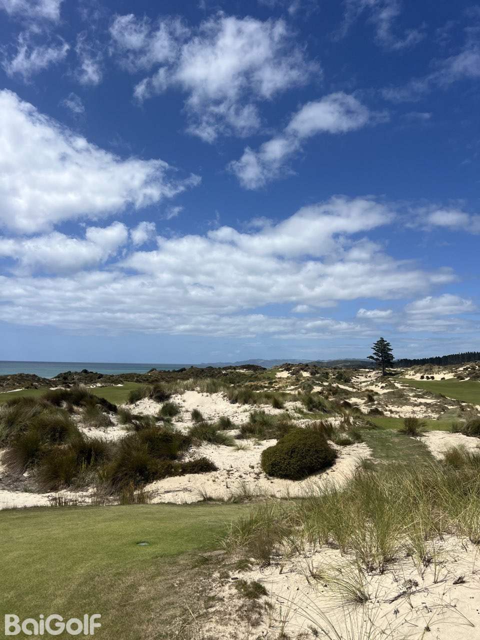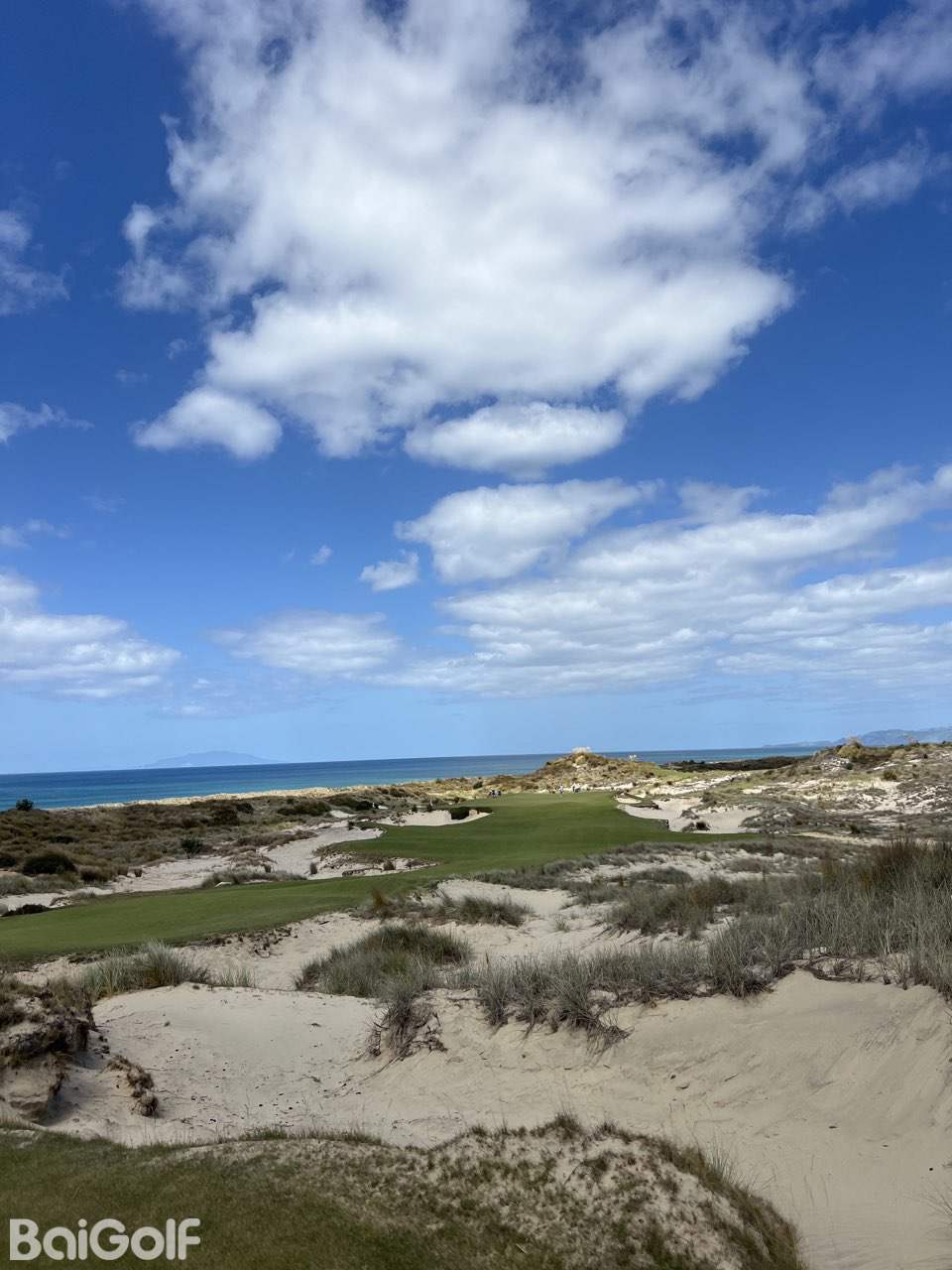 塔拉伊蒂的球洞向水面倾斜,可以俯瞰到原生态海湾的景色,周边一座巨大的沙丘给球场增添了一些狂野美。