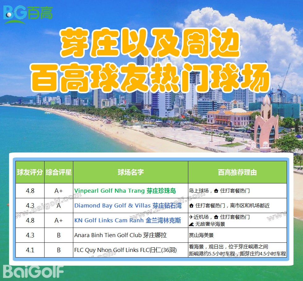 芽庄旺季球位紧张,建议提前预定球位。芽庄的第一个球场是钻石湾,第二个是珍珠,品质都非常不错。