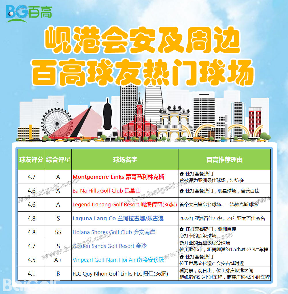 会安南岸【需入住球会酒店】(24亚洲百佳18名)+兰珂乐古浪(24亚洲百佳99名)+蒙哥马利(09年亚洲最佳)+巴拿山(18年百佳97名)