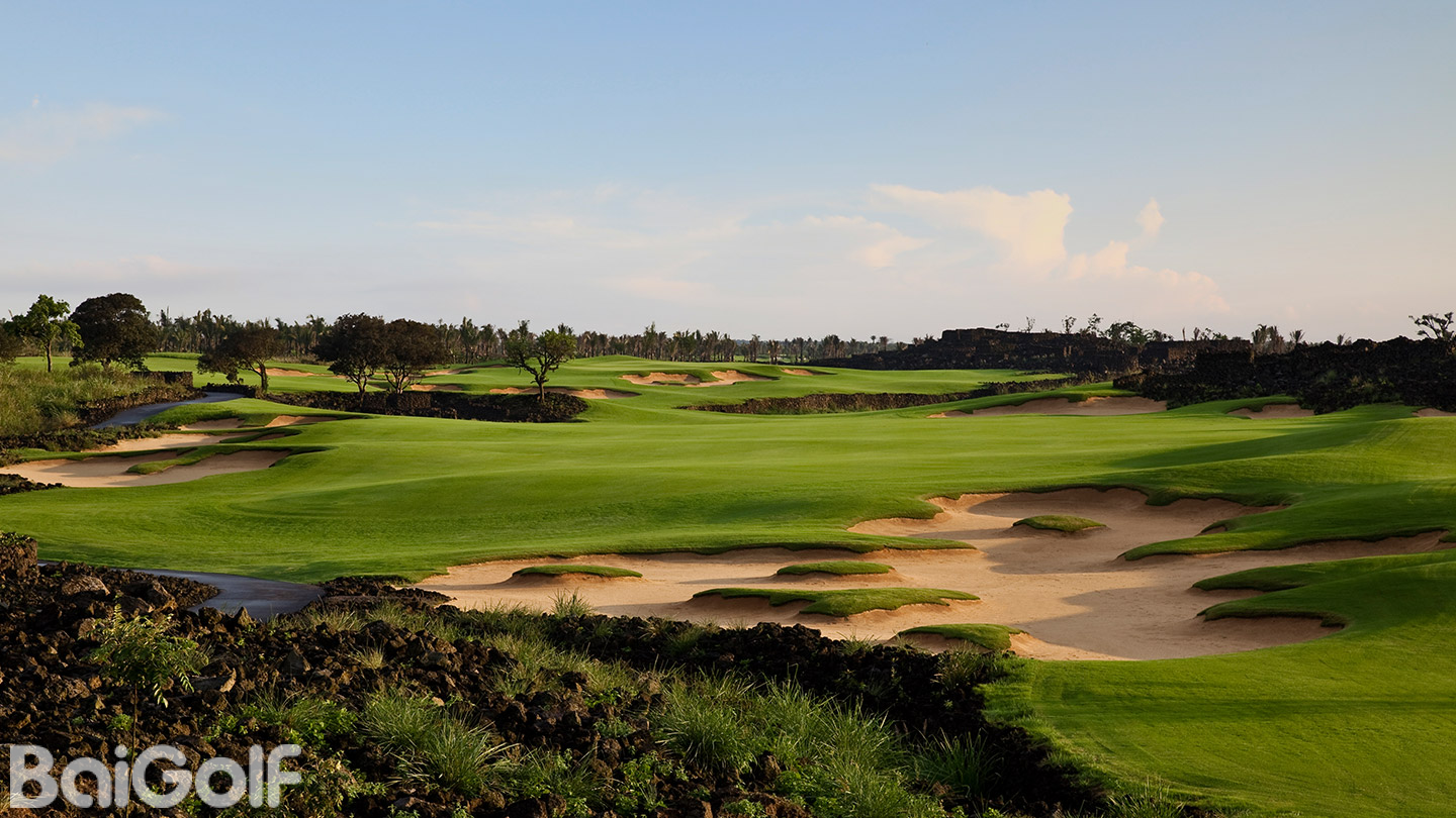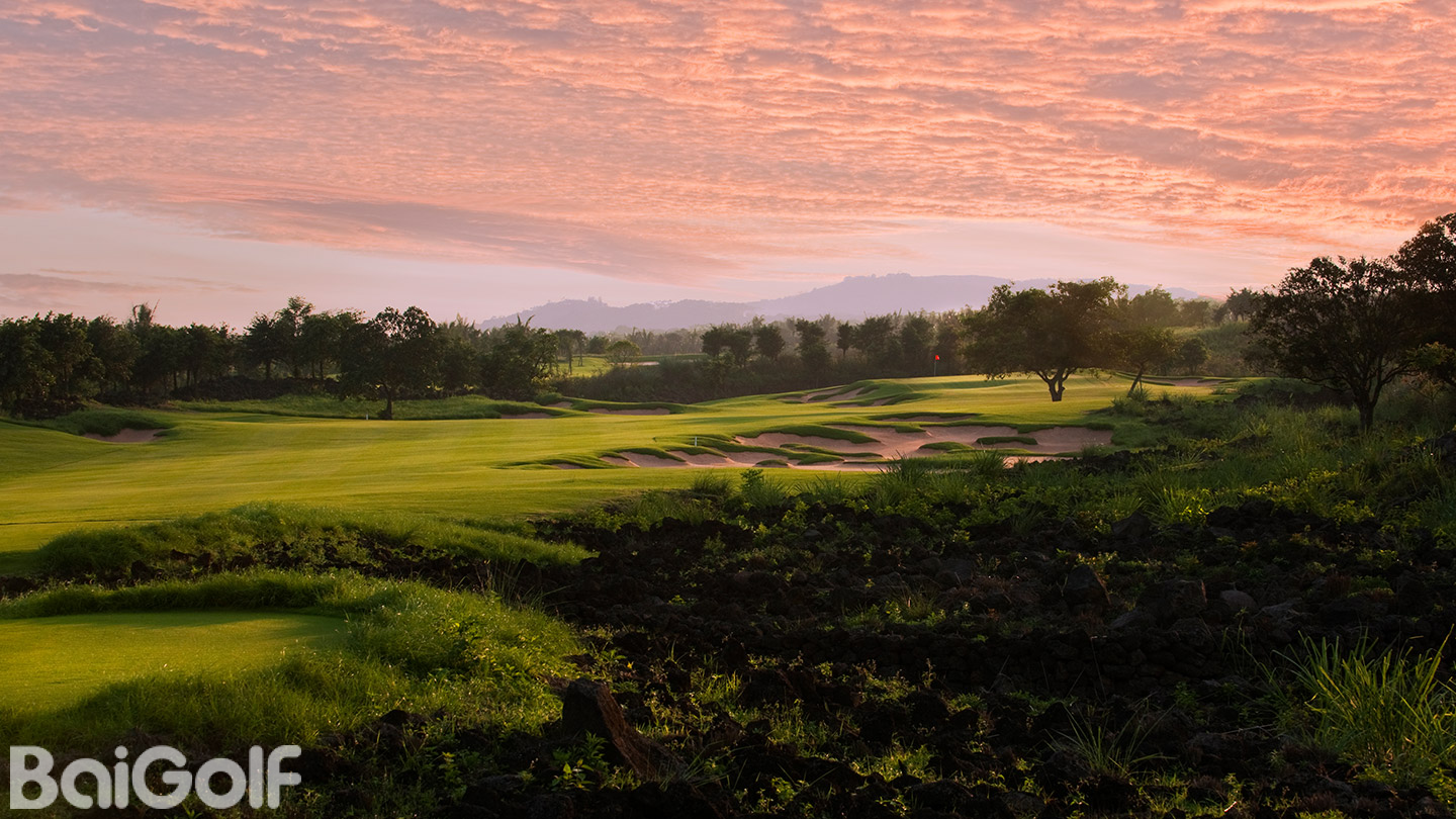 球場特有的地貌特征,是整個場地的火山岩地表,以及從25英裏之外運來的覆蓋在岩石層上的地表土。現場的原始地形落差很大,設計師非常注意在原始地形中“尋找”球洞,以盡可能地減少石方量,同時多保留壹些現場美麗的荔枝樹。火山岩鋪就的基礎底面被視爲設計過程中壹個重要的因素,因爲這些天然的岩石能夠造就出不規則的草皮與岩石之間的分界線,使這裏看上去與其他大多數的球場風格迥異。