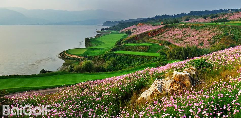 球場如同鑲嵌在陡峭山邊的壹塊塊繡花地毯,美麗的令人炫目。在這裏揮杆,也可以領略到陽宗海湖山巒起伏的壯闊美麗。春天來時,可以看到報春花、紫羅蘭、八仙花等等,朵朵的花兒盈盈點點,散落在場內,讓她愈發得迷人。
