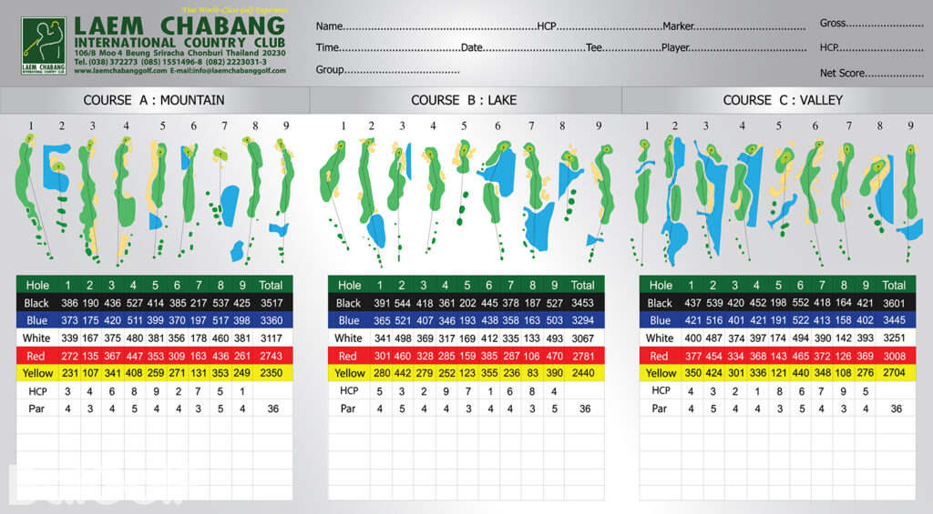 สนามแห่งนี้เป็นหนึ่งในสนามที่ท้าทายและมีกลยุทธ์มากที่สุดในประเทศไทย ประกอบด้วย 3 สนาม 27 หลุม ได้แก่ Mountain Course (A), Lake Course (B) และ Valley Course (C) สนามแห่งนี้เคยจัดทัวร์ภายในประเทศมาแล้วหลายครั้ง และมีชื่อเสียงอย่างมาก