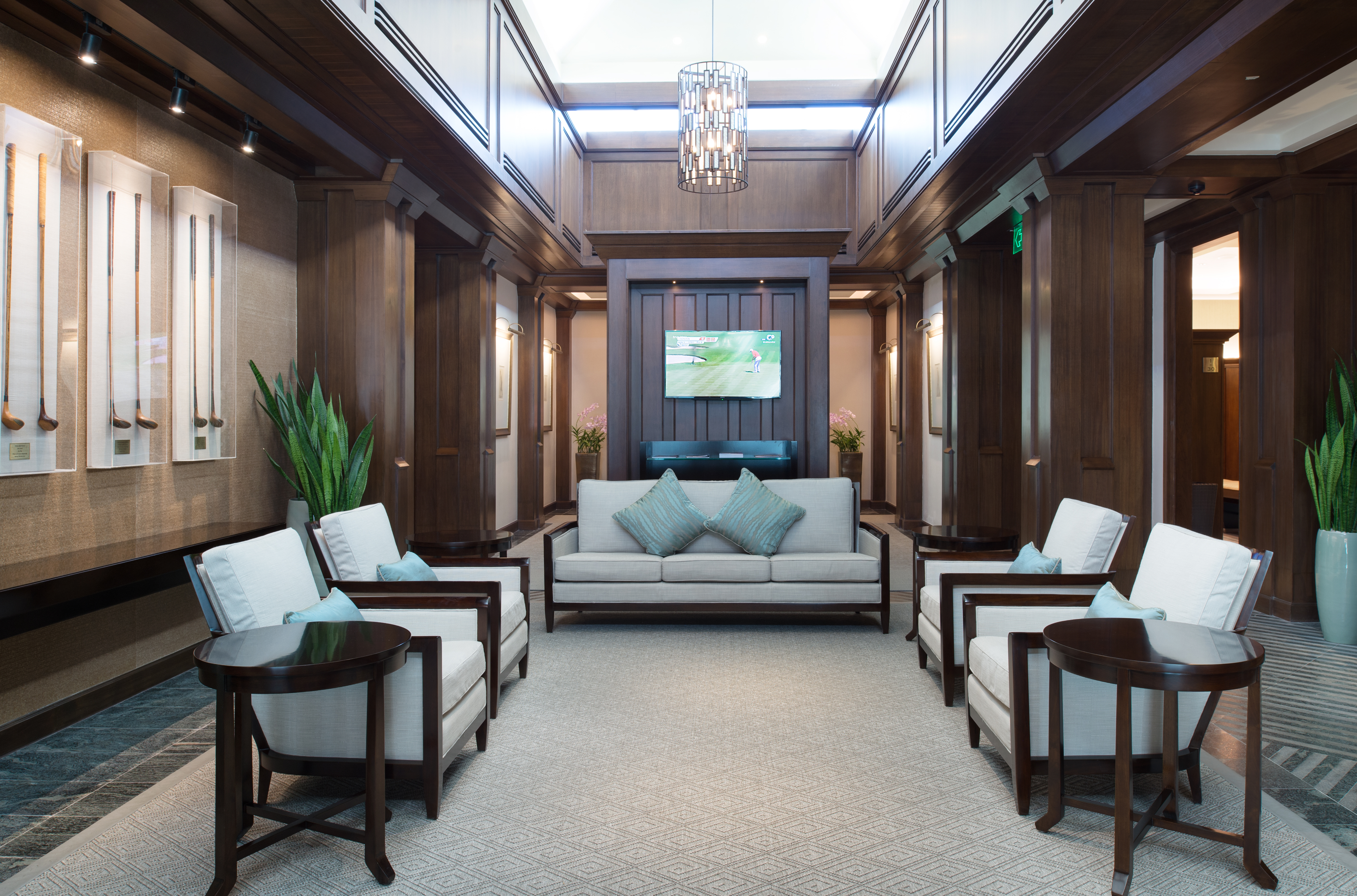 จุดเด่นของสนามนี้คือกรีนที่สมบูรณ์แบบ ทะเลสาบและต้นไม้ที่แทรกอยู่ระหว่างกรีนช่วยเพิ่มทั้งความสวยงามของทิวทัศน์และความยากให้กับสนาม