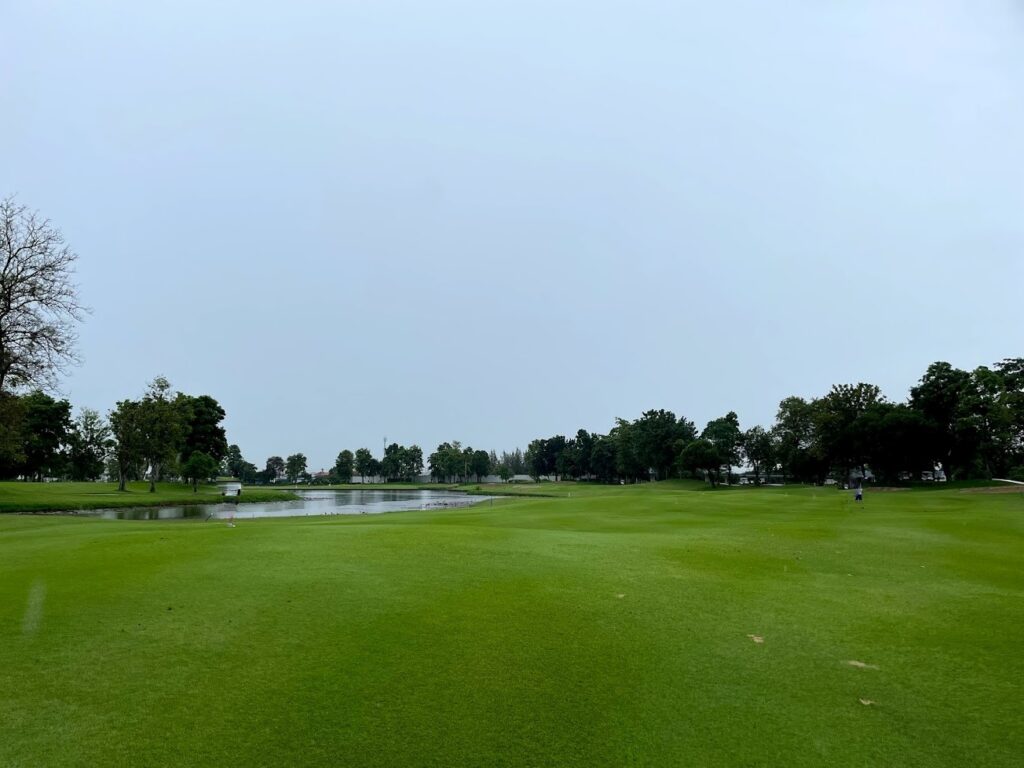 จากแท่นทีออฟสีขาวธรรมดา สนามกอล์ฟมีความยาวมากกว่า 6,200 หลา หลายสนามในกรุงเทพฯ ค่อนข้างสั้น แต่สนามนี้ที่ฟลอร่าวิลล์ยาวกว่า