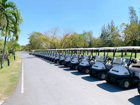 อย่างแรกเลย เมื่อคุณมาถึงทางเข้าคลับเฮาส์ขนาดใหญ่ จะมีแคดดี้จำนวนมากรอช่วยคุณขนถุงกอล์ฟ
