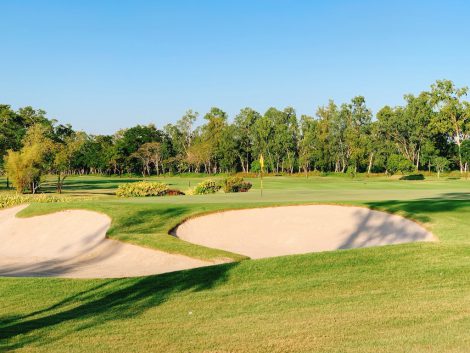 จากภาพจะเห็นได้ว่าบังเกอร์รอบกรีนนั้นลึกและสูงชัน ดังนั้นหากติดอยู่ในบังเกอร์ คุณจะหนีออกได้ยาก!