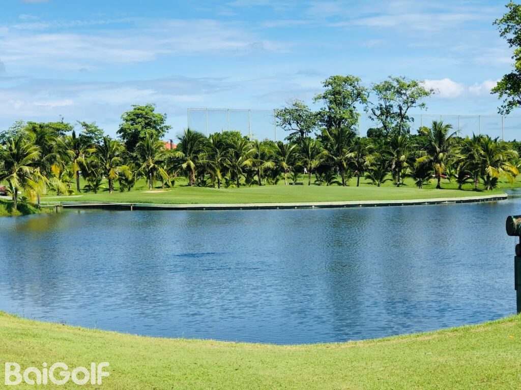 จากแท่นทีออฟปกติ แฟร์เวย์ยาวประมาณ 6,000 หลา แต่เป็นสนามที่ค่อนข้างยาก มีลักษณะเด่นคือมีน้ำปริมาณมาก