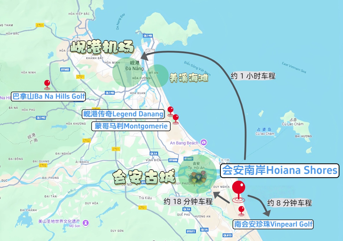 - 会安南岸距离会安古镇约18分钟车程,距离岘港国际机场约1小时车程