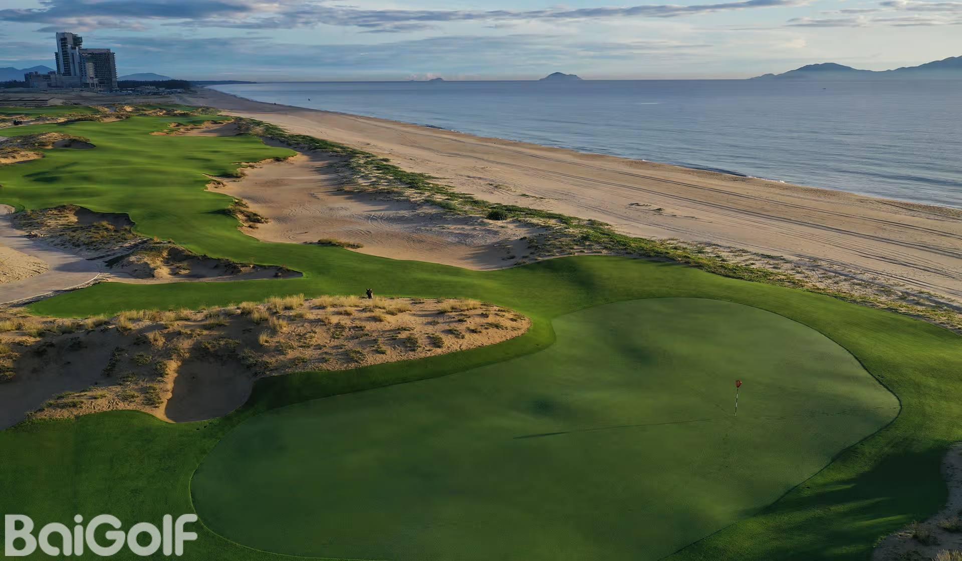在这座壮观的海滨三杆标准杆上体验各种精彩的选择,有着两个对立的开球角度:沙滩和沙丘。占婆群岛的全景景色营造出令人难忘的背景。