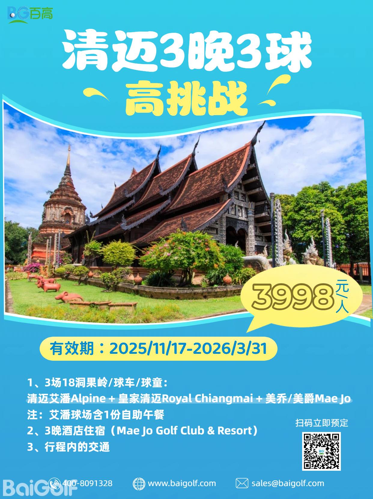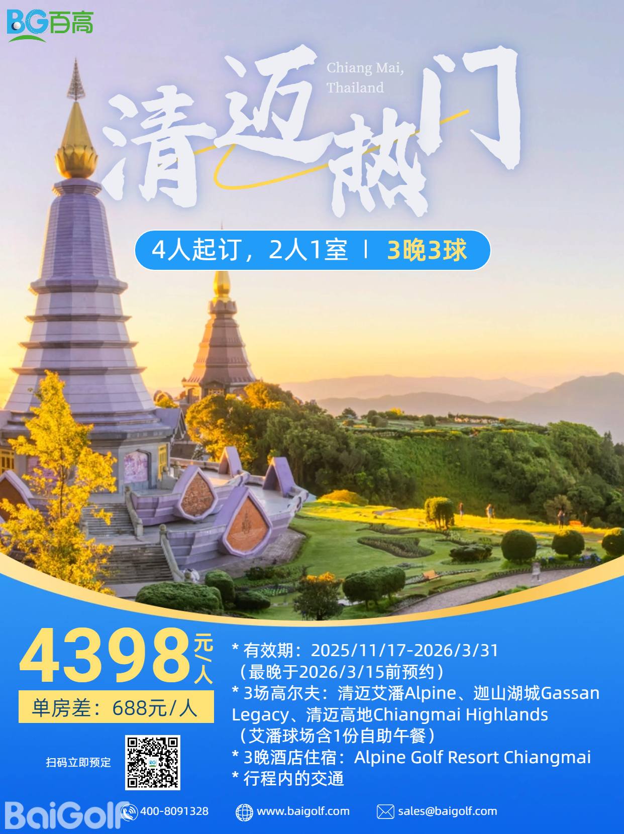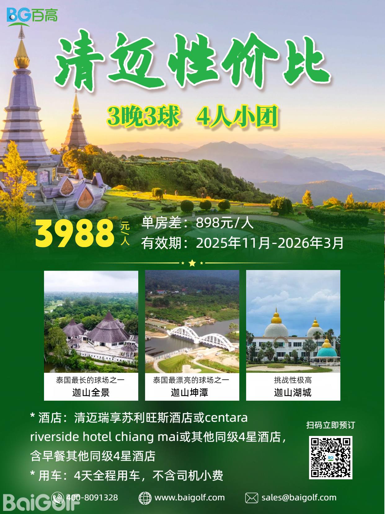 清邁艾潘(世界級球場)+迦山湖城+美爵+清邁高地(清邁最美)