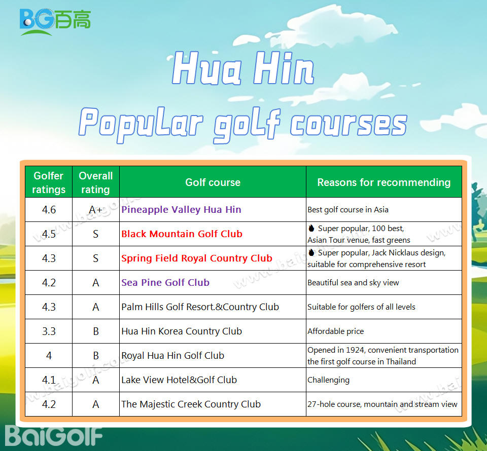 4 | B | Royal Hua Hin Golf Club | Opened in 1924, the first golf course in Thailand, convenient transportation |