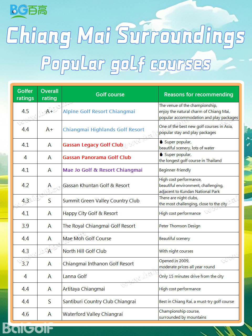 3.7 | A | Chiangmai Inthanon Golf Resort | Opened in 2009, moderate prices all year round |