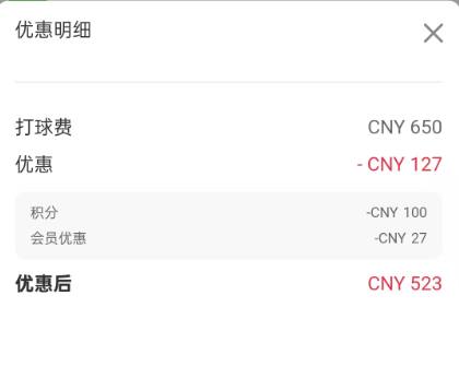 因为积分随着客户订场的次数累积,会员等级、消费券/促销券会发生变化,因此每次可以抵扣的金额都不一样,最后呈现的价格也不一样。