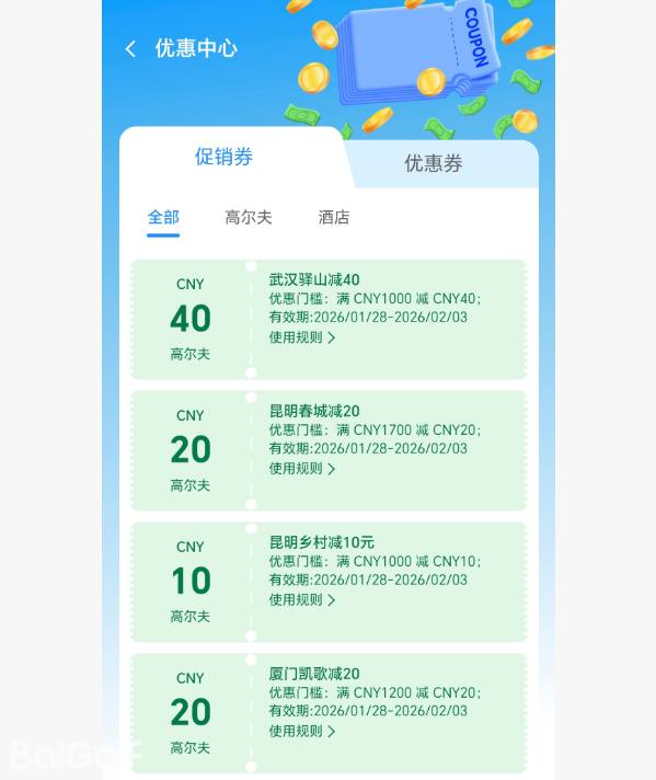 到手价已计入您的积分、会员等级、消费券/促销券等权益,权益使用后将会带来部分球场券后价格的变动。