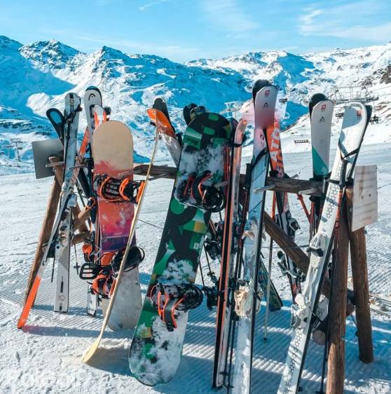 一般在滑雪场会提供雪板、雪靴、雪杖等滑雪设备的租借,初次接触滑雪的新手直接租借更方便。