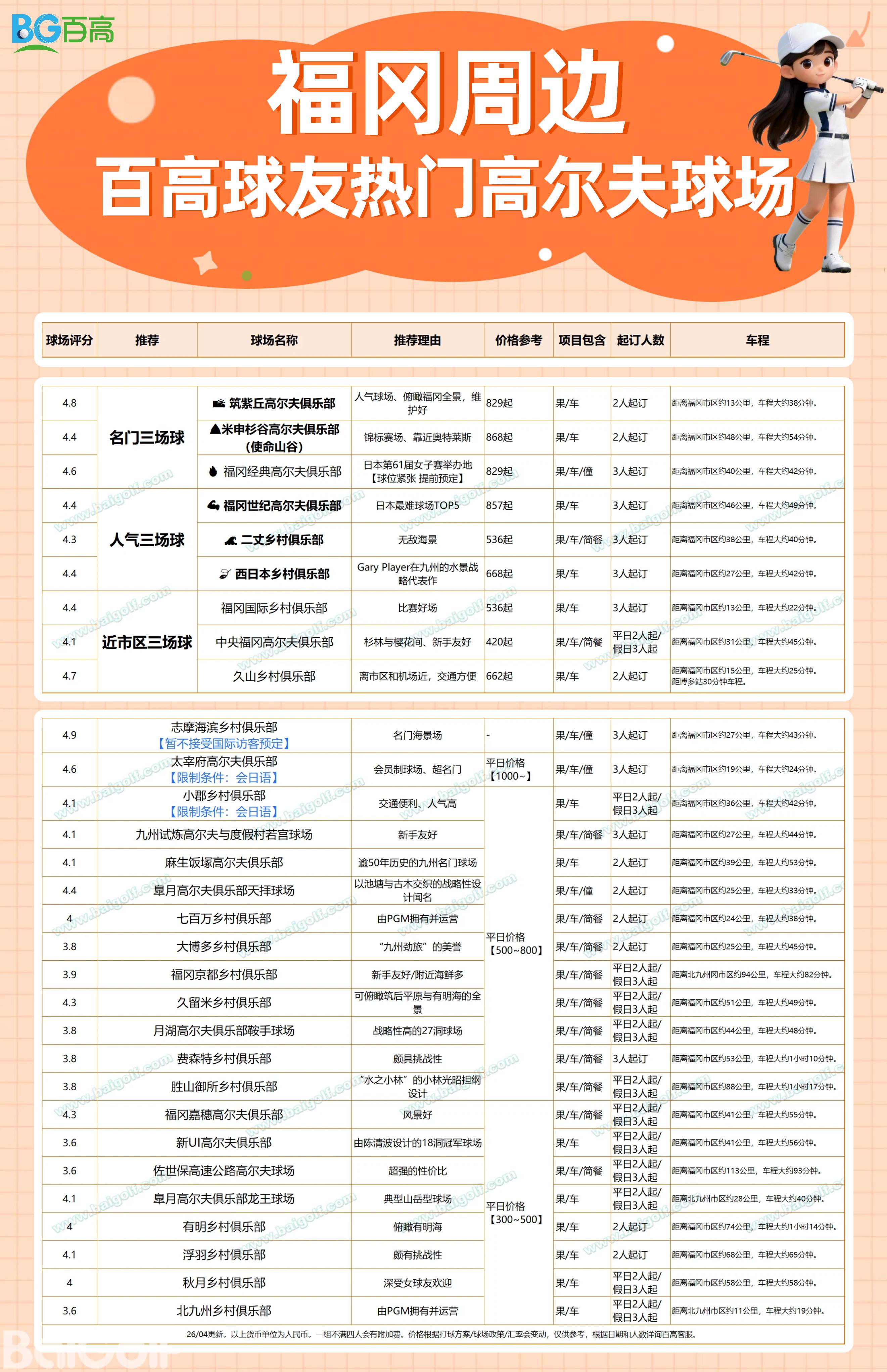 福冈人气高球套餐