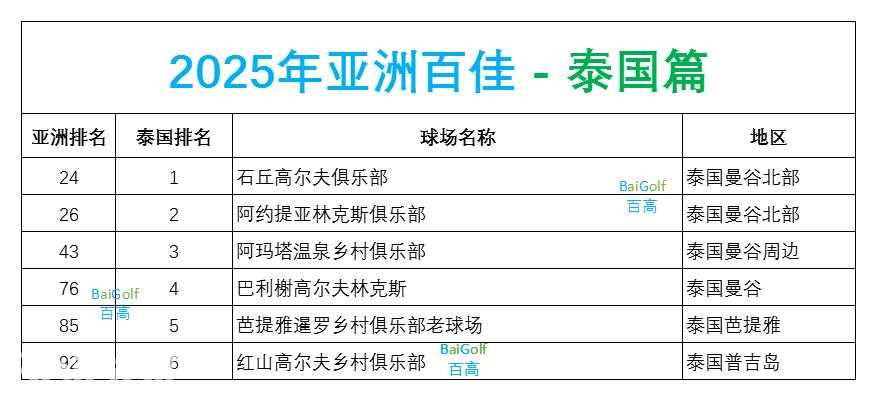 2025亚洲百佳泰国篇(附泰国球场大全)