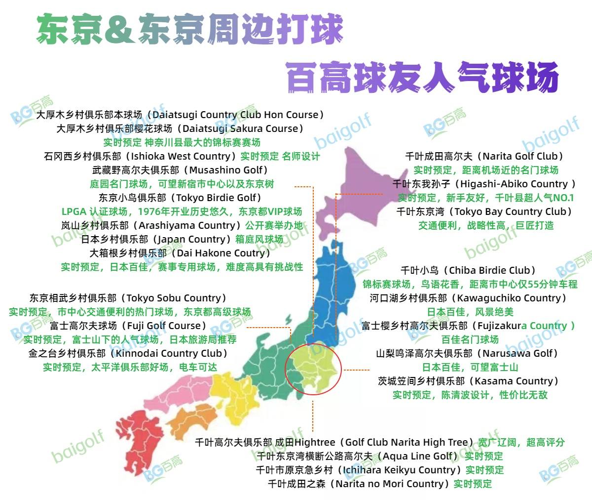 十大百高赴日球友东京周边球场人气榜单