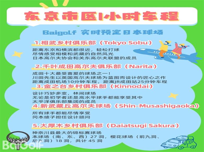 距離東京市內1小時車程以內的實時預定日本高爾夫球場